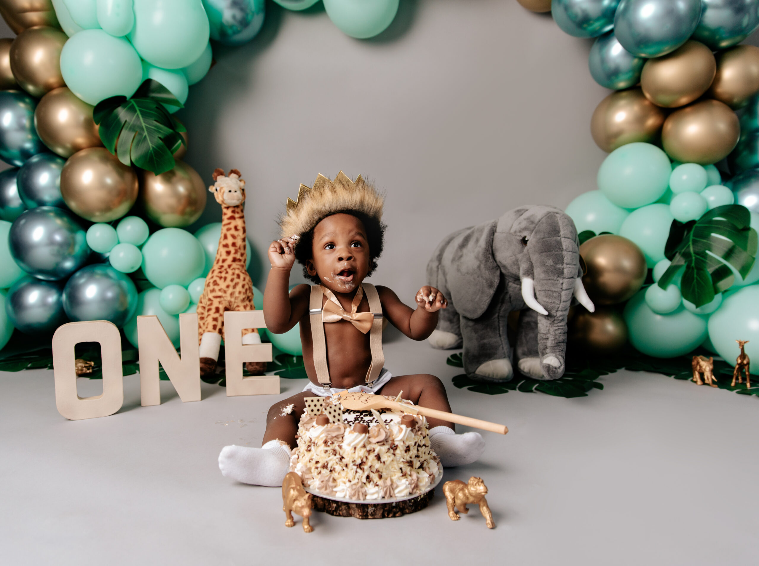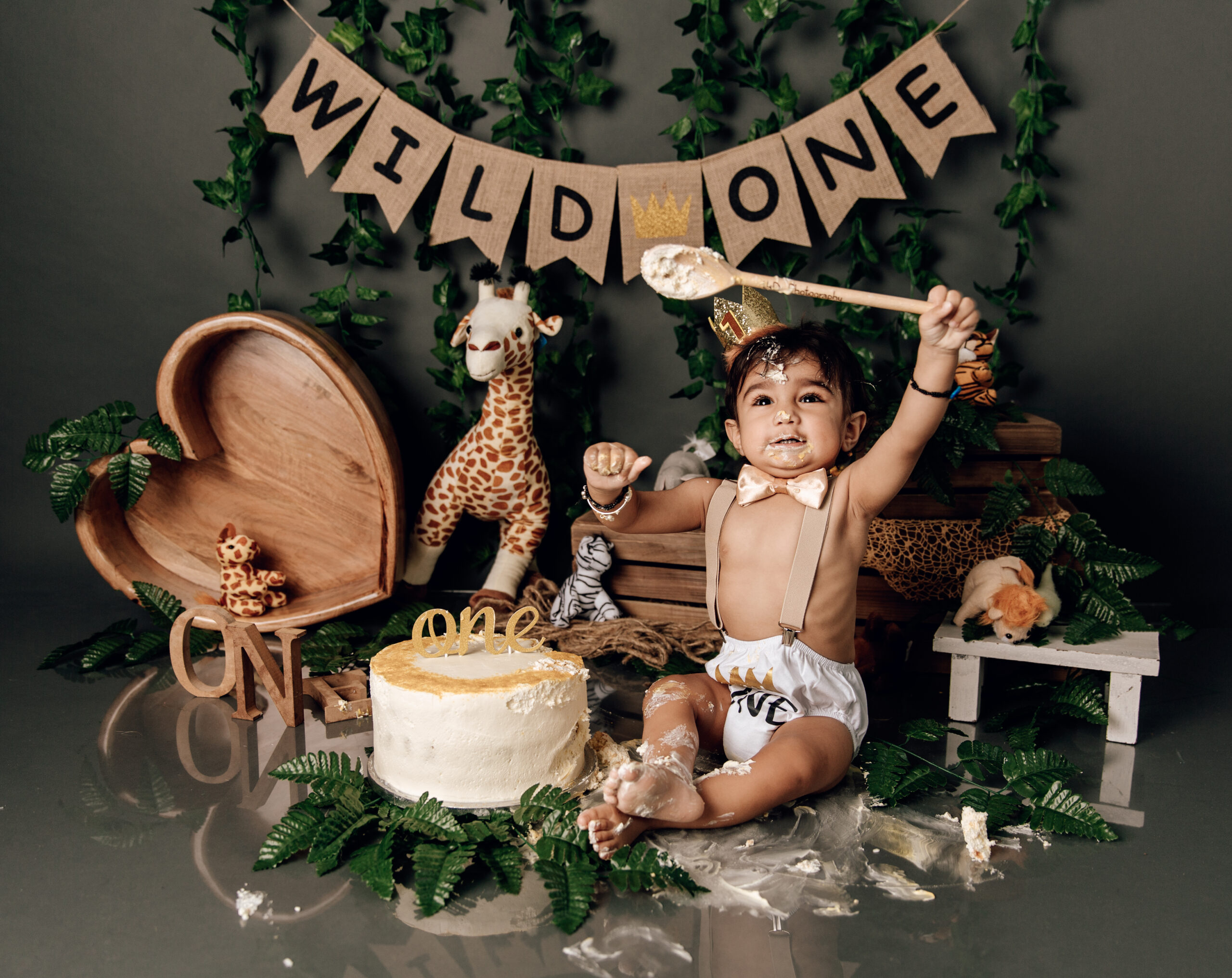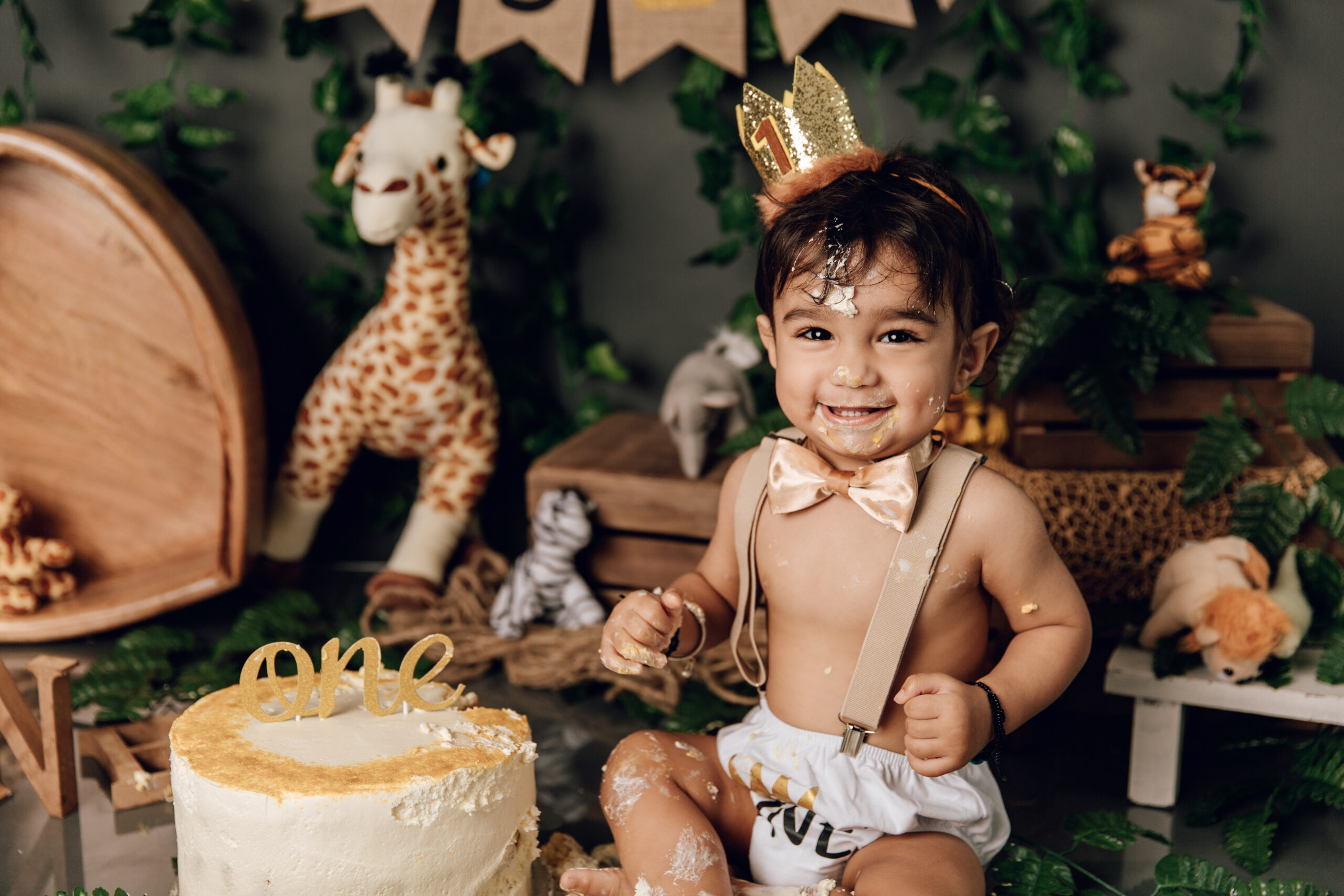 The session begins with simple portrait shots, focusing on your baby’s adorable expressions and unique features. This is followed by the exciting cake smash, where your little one gets to touch, taste, and dive into their cake—creating the sweetest (and messiest!) moments that make for the most genuine photographs.